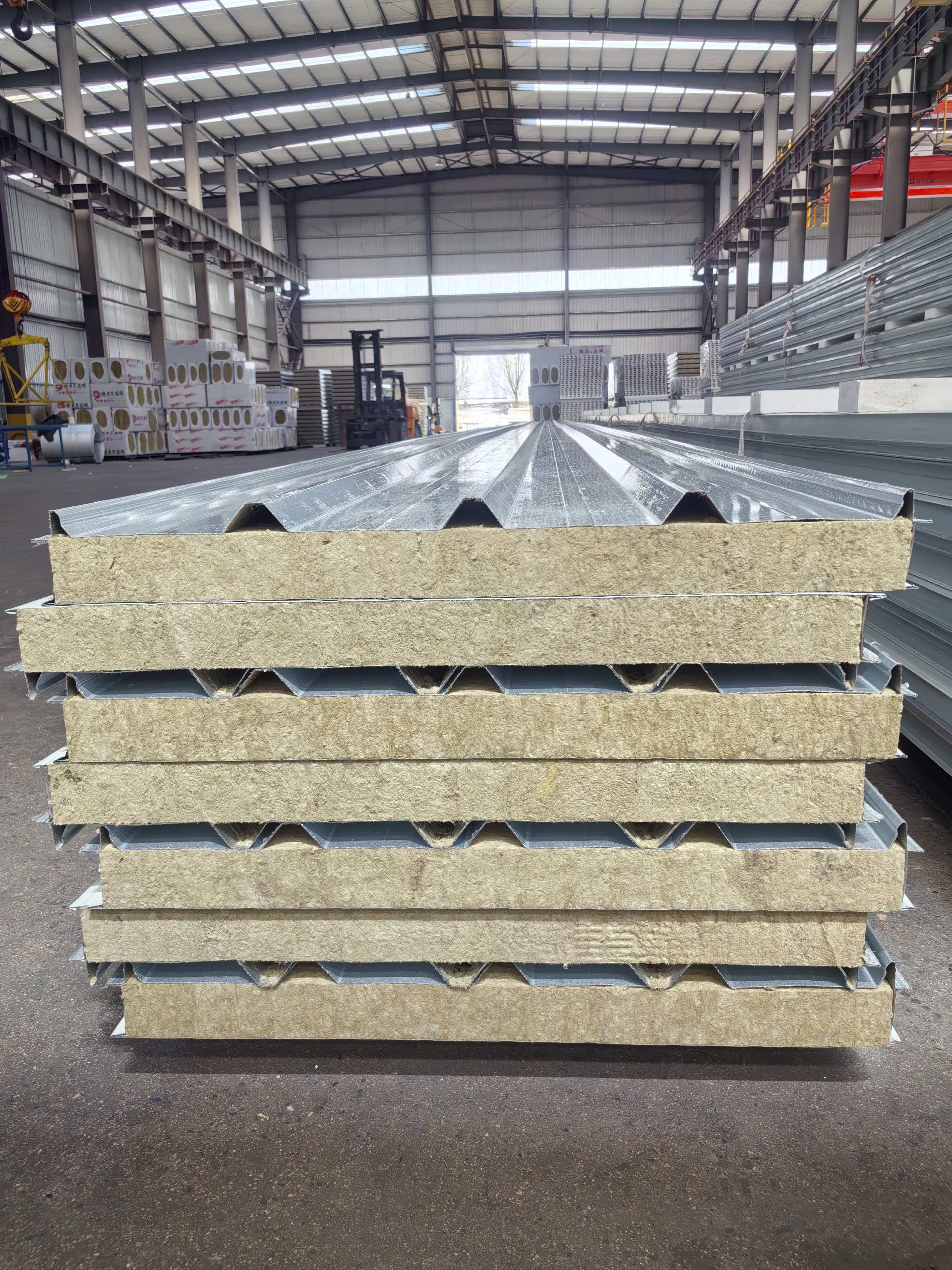 Système mural d'entrepôt et système de toiture, atelier d'une grande entreprise, panneaux muraux de salle de nettoyage et panneaux de toiture, résistant au feu et à l'eau, l'isolation est bonne, résistant aussi à la voix,l'utilisation des panneaux sandwich en laine de roche/laine de verre est donc très répandue. Peu importe les immeubles de bureaux, ou l'entrepôt de l'usine, les panneaux sandwich de laine de roche est meilleur prix avec un prix approprié par rapport à PU. Et le toit et revêtement de mur à la fois nous pouvons offrir,même les pièces jointesComme le dessin, il suffit d'installer après avoir reçu les produits.